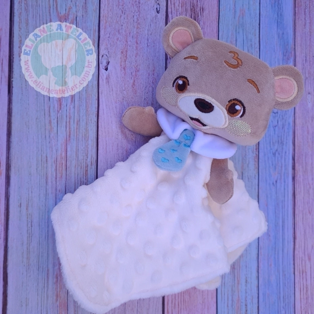 Nossa Naninha é feita com pelúcia e enchimento antialérgicos. A mantinha com tecidos próprios para cobertas de bebês. Nenhuma parte é colada, tudo é costurado com segurança para o bebê não conseguir arrancar.